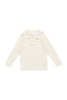 The Cleo Top – Parchment is a beautifully knitted piece in an off white hue, featuring a delicate ribbed texture and a dainty ruffled collar. With its classic button placket and timeless silhouette, this top adds a touch of elegance to your little one’s wardrobe—perfect for layering or wearing on its own.