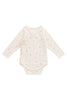 The Marina Bodysuit in Sweet Magnolia Simple is a beautifully designed essential for your little one. Featuring a long sleeve wrap-style silhouette, this bodysuit ties gently at the side and includes dome closures at the crotch for easy changing. Crafted from 100% Organic Cotton, it offers breathable comfort and a delicate pointelle knit for timeless charm.